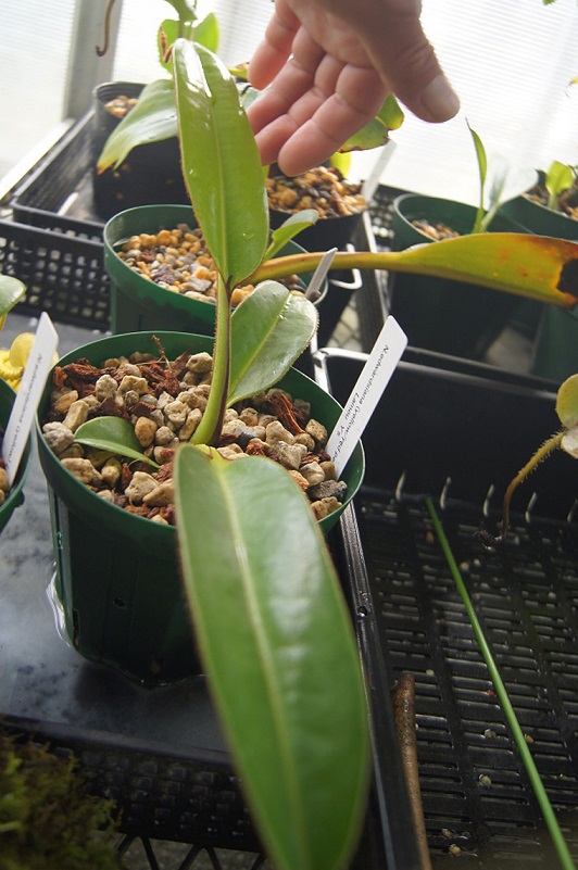 キナバル山系のブーキットの種子から実生後、選別された山田食虫植物農園のコレクション。 山田食虫植物農園で初めて見た時に一目惚れして、脇芽が出たら譲って戴ける様に予約していた。 何年も待って漸く脇芽挿し穂を分譲して戴けた。 挿し木後、約3ヶ月、どんどん腐って来た・・・ 高かったのにィ・・・・・><。