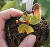 とても古い由来のトランカタ。 大昔に山田氏が日の出花壇で買ったものを長年維持しており、その株から増殖した苗を譲って戴いたもの。当方の小さな温室では山田食虫植物農園の親株ほど大きく成熟させる事が叶わず、満足行く大きさの捕虫嚢を作る事が出来なかった。